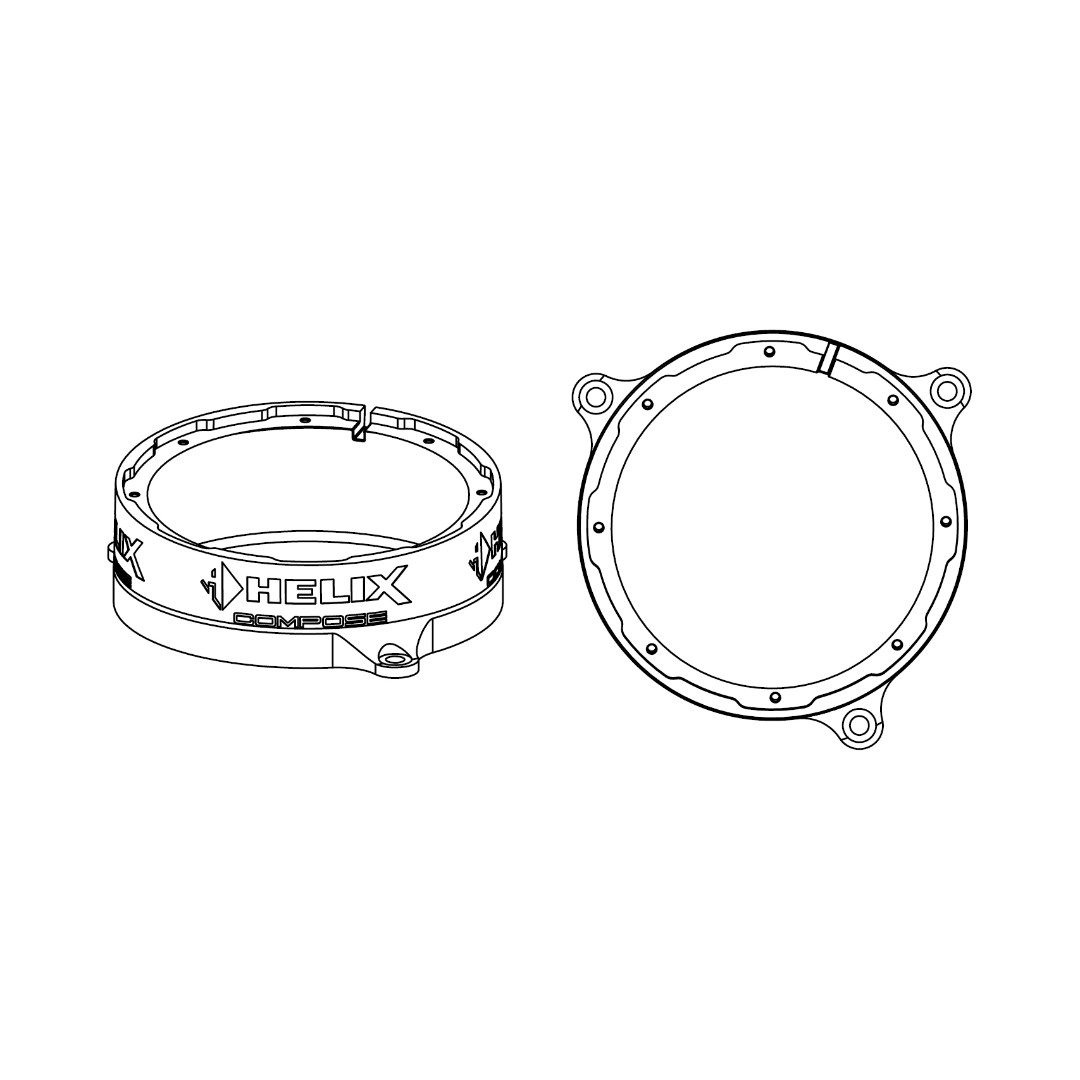 Они превращают ваш универсальный 6,5-дюймовый / 165-мм среднечастотный динамик HELIX COMPOSE с технологией FlexMount165 в автомобильный динамик, обеспечивая простую и акустически оптимизированную установку в исходное место крепления в автомобиле.