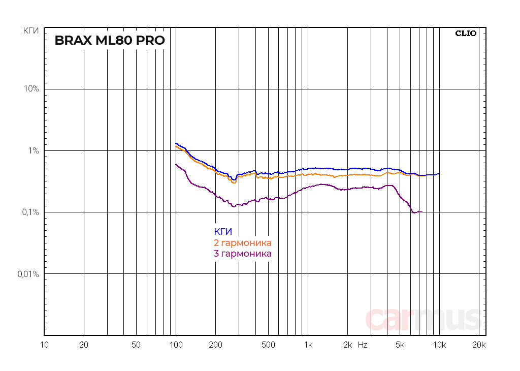Гармонические искажения. Обычно по этой характеристике можно оценить работу на нижнем краю диапазона, насколько резко начинаются искажения с понижением частоты. Ну и, соответственно, сделать выводы, ниже какой частоты динамики лучше не пускать.