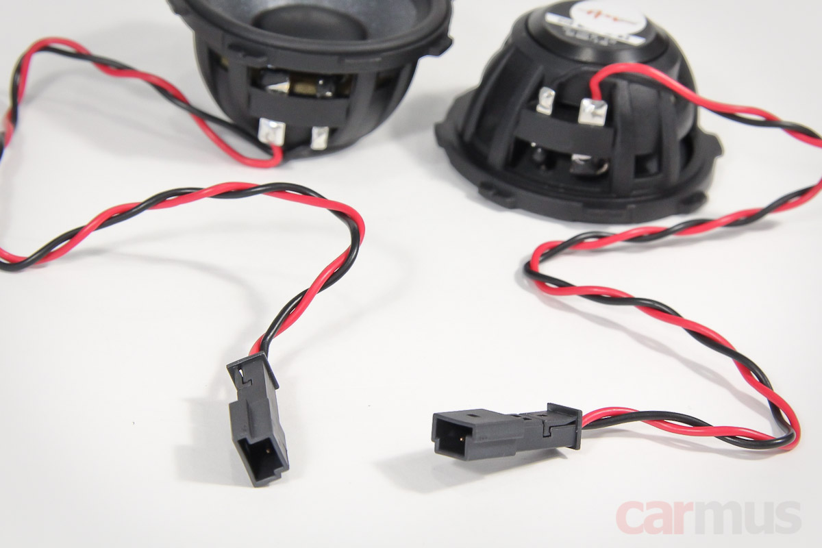 Подключение у обеих моделей — с явным намёком на интеграцию в штатные системы. Причём у 3-дюймовых СЧ динамиков в комплекте идёт вообще целый ворох адаптеров.