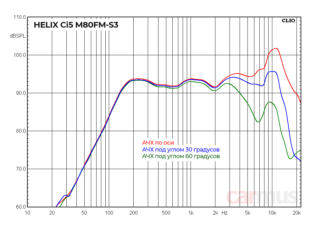 Анализ работы Helix Ci5 M80FM-S3. А вот динамики покрупнее хоть и стараются забраться повыше по частоте, уже широкополосными не являются. Это классические «серединки», хоть и с расширенным вверх диапазоном. Наверху, правда, получается выброс АЧХ, но диапазон до 7-8 кГц они отрабатывают без особых резонансов в подвижке и подвесах. Так что свобода в выборе стыка с твитерами весьма приличная.
