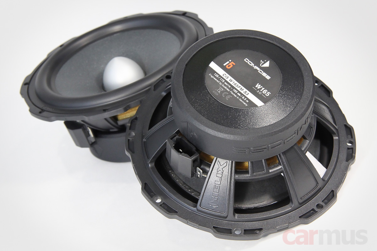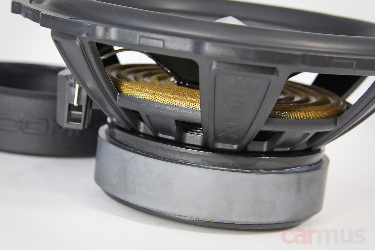 Динамики построены на тех же корзинах из конструкционного пластика, что и серия Ci7 (да и все динамики Compose, к слову) – они имеют стандартные посадочные размеры для 6,5-дюймового калибра, но сложную форму фланцев. В ассортименте Helix для них есть куча установочных колец под разные марки авто – эту систему в Audiotec Fischer называют Flex Mount.