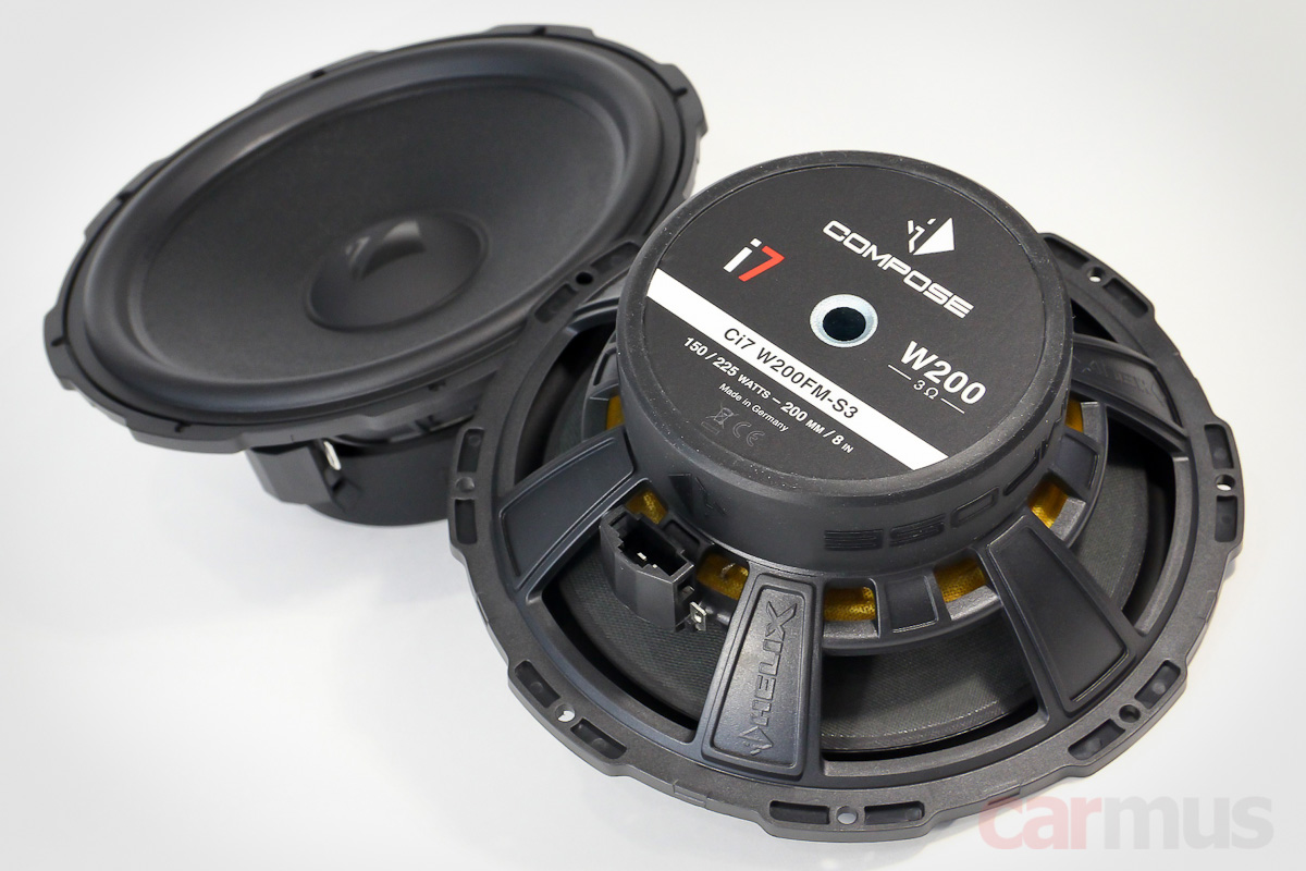 Формально динамики названы 3-омными, однако жёсткой просадки импеданса ни на одном из частотных диапазонов не наблюдается. Поэтому если решите ограничиться простым апгрейдом с заменой акустики, можно спокойно ставить их вместо штатных 4-омных динамиков — получите небольшой прирост в отдаче, практически не нагружая при этом усилительную часть системы. Хотя, конечно, серия Ci7 больше тяготеет к использованию не со штатными, а с нормальными усилителями, в том числе процессорными.