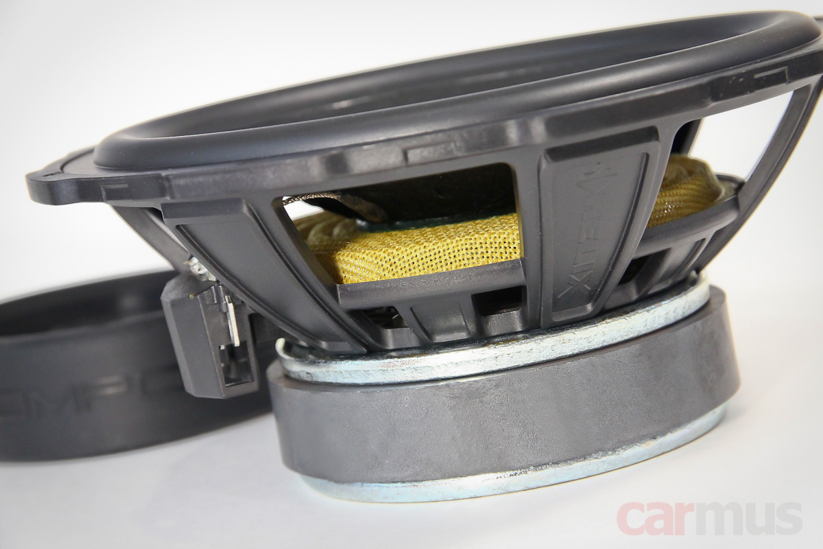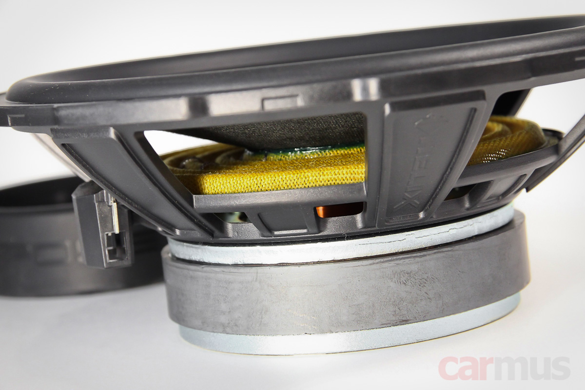 Материал диффузоров в описании — всё тот же Ultra High Damped Crafted Paper, лицевая поверхность выглядит как у 6,5-дюймового динамика, но фактура тыльной части больше характерна для прессованной целлюлозы.