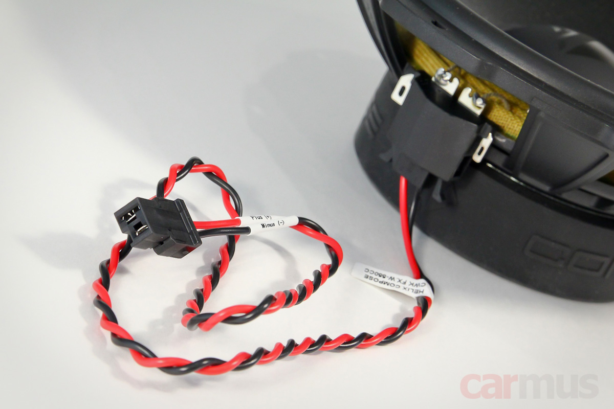 Клеммы — двойные, имеют собственное название FlexConnect. Хочешь — подключай через привычные «лопаточки», а хочешь — через переходники к штатной проводке. В комплекте идут хвосты, которыми динамики можно подключить, если понадобится, к пассивным кроссоверам — о них тоже ещё отдельно поговорим.