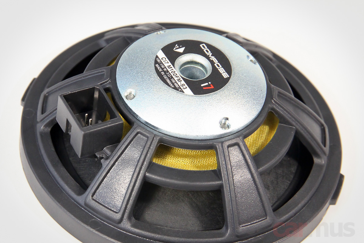 Идём дальше, среднечастотники Helix Ci7 М100FM-S3. Это полноценные 4-дюймовые динамики, но без монтажных колец их внешний диаметр составляет всего 98 мм.
