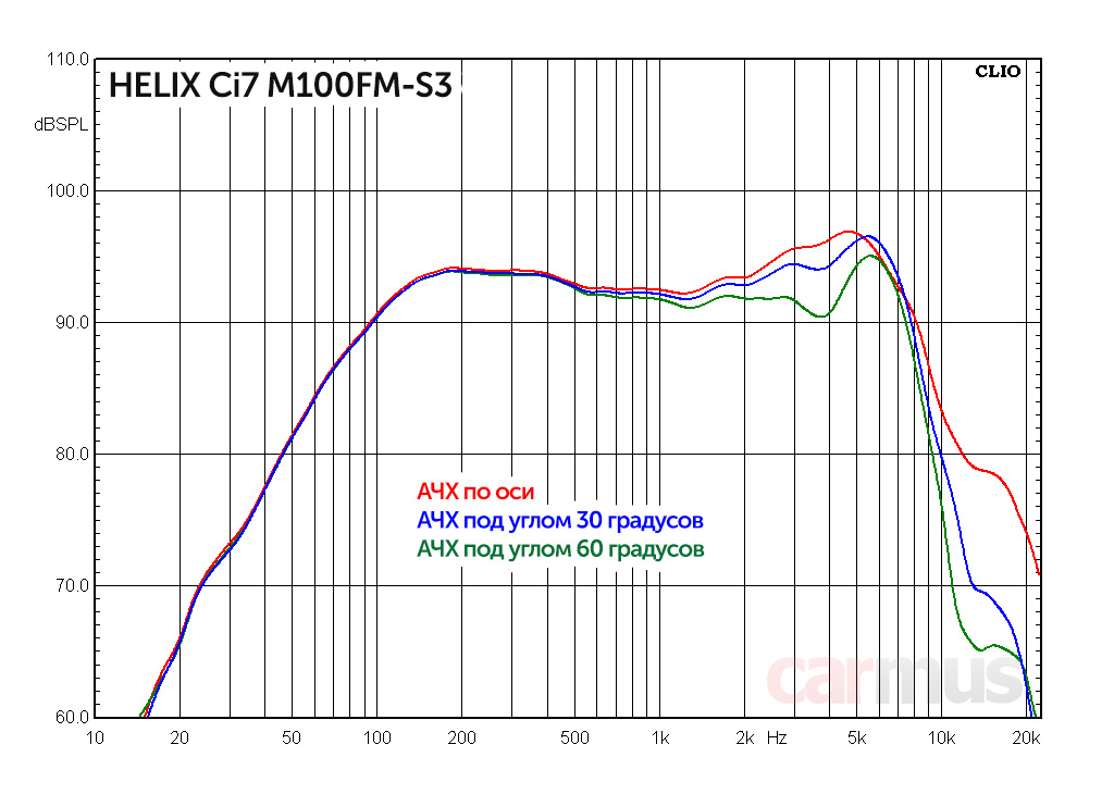 Helix Ci7 М100FM-S3 — классные среднечастотники, понравились. Для своего размера хорошо забираются вниз по частоте. Без крайностей, но на настройку ФВЧ 200-250 Гц реагируют спокойно, а это обычно как раз то, что нужно при замене штатных динамиков этого калибра.