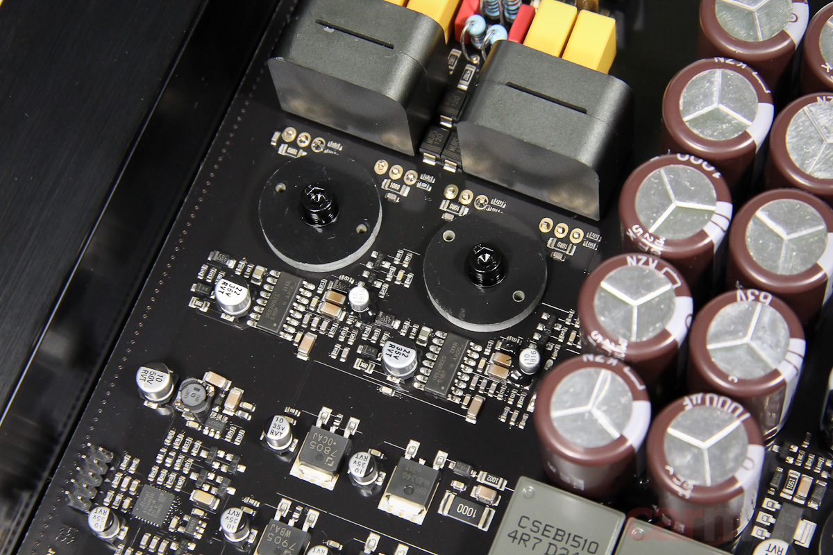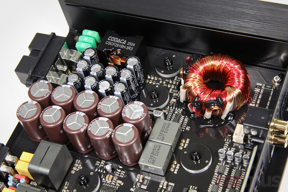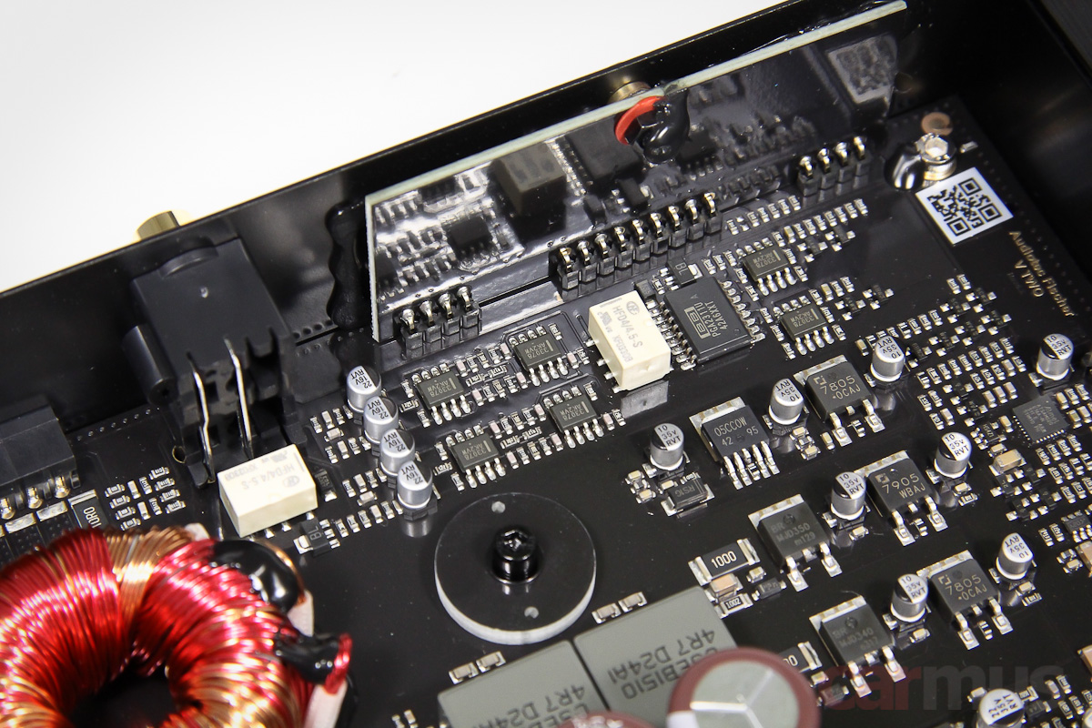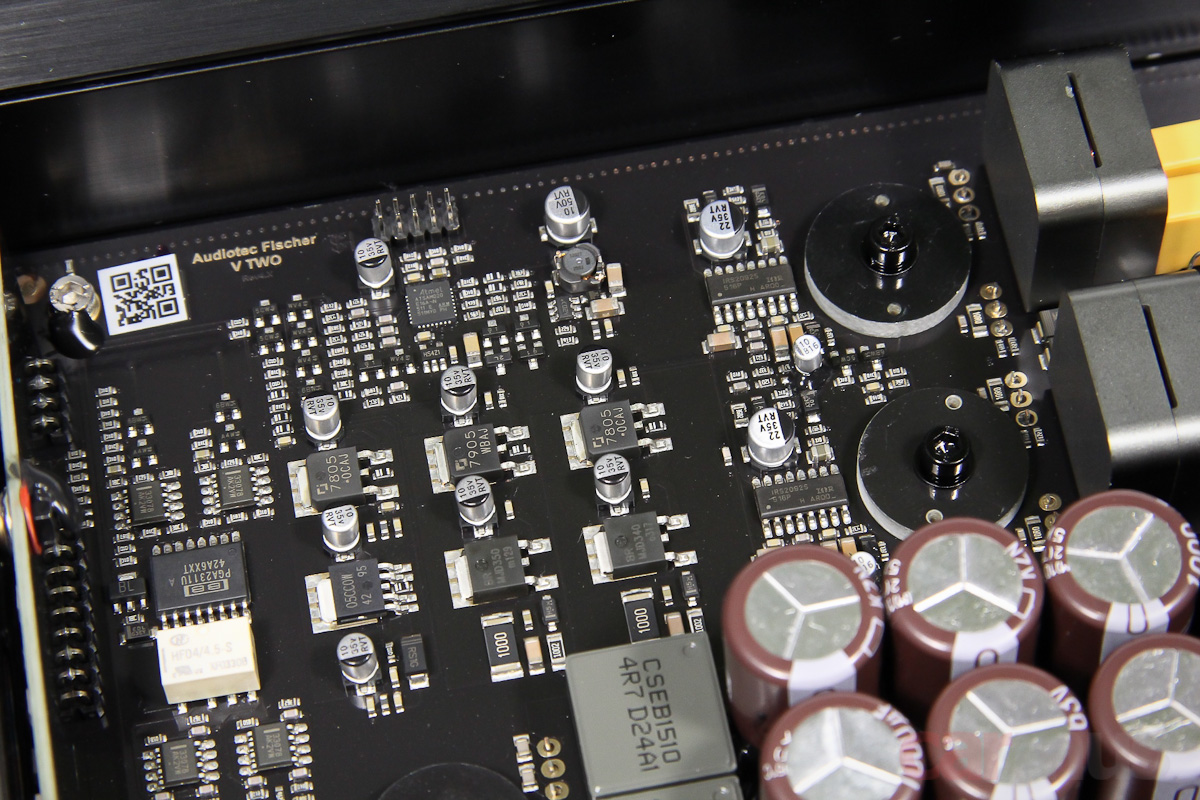 Теперь немного начинки. В разговорах с представителями Audiotec Fischer основной акцент в последнее время делается на построение блоков питания в новых моделях Helix, включая и модель V Two тоже. Как бы то ни было, на измерениях усилитель действительно показывает невысокий шум, а это один из аспектов, на которые влияет БП. С мощностью — тоже порядок, да и на слух энергетический запас хорошо чувствуется.