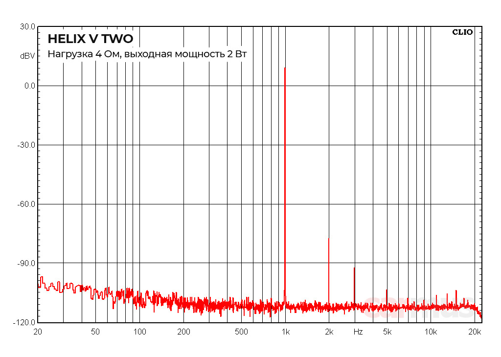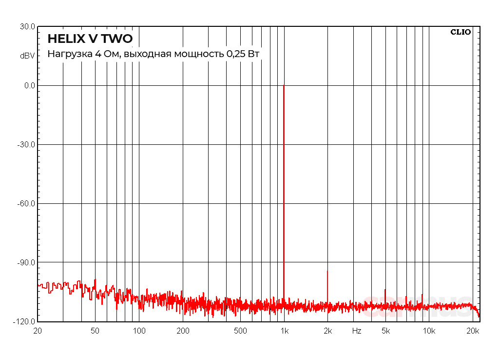 Поскольку кроссоверных фильтров у V Two нет, сразу перехожу к усилительной части. Тут сходу и безо всяких оговорок — низкий фоновый шум (плещется где-то в районе от -100 до -110 дБВ) и непривычно чистые спектры искажений (по крайней мере, мощные усилители обычно ведут себя заметно грубее).