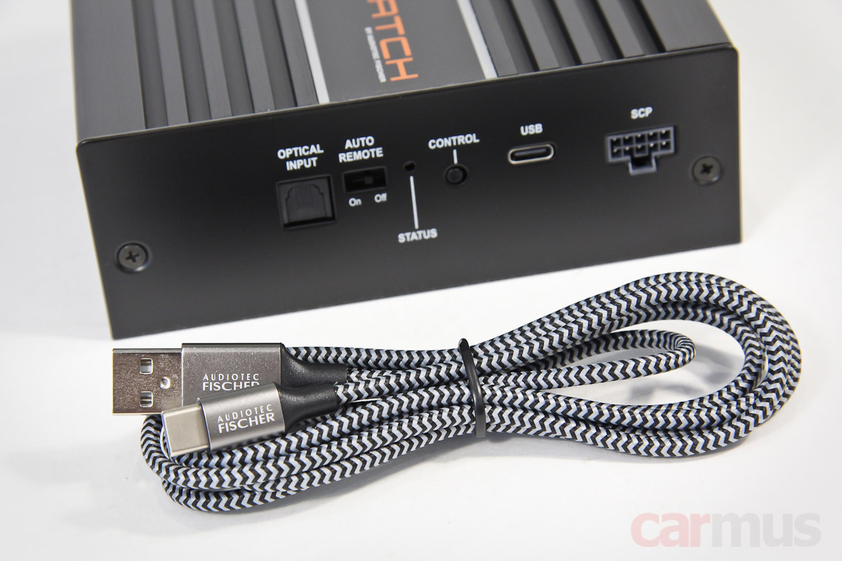 Процессор настраивается традиционно, с компьютера. Подключение — через USB Type C, в комплекте идёт вполне приличный качественный кабель. Длина небольшая, всего 1,5 м, хотя если усилитель будет стоять где-то в передней части салона, то этого достаточно.